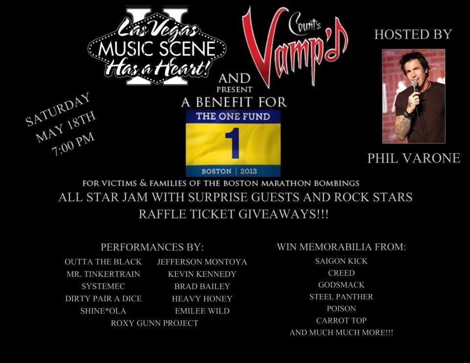 Boston Bombing Relief Posted by Headbangerwoman on May 8, 2013 Posted in: Bands, Live Shows, Music, Press Release. Tagged: Boston Bombing, Carrot Top, Fund Raiser, Fundraiser, Las Vegas, Phil Varone, Relief Fund, Steel Panther, Vamp'd. Leave a comment 53.541541 -113.300806 Share Headbangerwoman.comTweet Click to email a link to a friend (Opens in new window) Email Click to print (Opens in new window) Print Share on TumblrLike Loading... Related Posts navigation ← As I Stand Trying To Kill My Wife Paranoid Pamela →