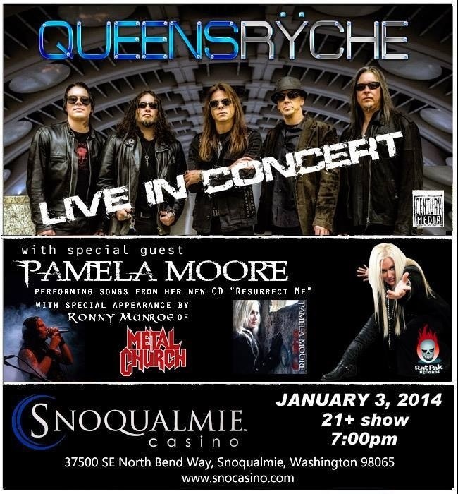 Queensryche LIVE! Posted by Headbangerwoman on January 2, 2014 Posted in: Bands, Flyer, Live Shows, Music, Press Release. Tagged: Casino, Live, Metal Church, Pamela Moore, Queensryche, Ronny Munroe, Seattle. Leave a comment Share Headbangerwoman.comTweet Click to email a link to a friend (Opens in new window) Email Click to print (Opens in new window) Print Share on TumblrLike Loading... Related Posts navigation ← HAPPY NEW YEAR 2014 2013 in review →