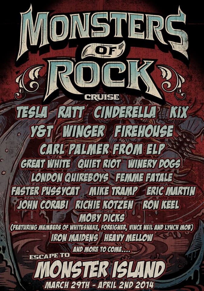You Snooze, You Lose… Monsters Of Rock is a…….. SOLD OUT Cruise Posted by Headbangerwoman on January 3, 2014 Posted in: Bands, Flyer, Live Shows, Music, Press Release. Tagged: 2014, Cinderella, cruise, Faster Pussycat, Femme Fatale, Firehouse, Iron Maidens, John Corabi, Kix, Mike Tramp, Monsters of Rock, Quireboys, Ratt, Tesla, Vixen, Winger. Leave a comment NO TICKETS LEFT!! SOLD OUT!! Share Headbangerwoman.comTweet Click to email a link to a friend (Opens in new window) Email Click to print (Opens in new window) Print Share on TumblrLike Loading...